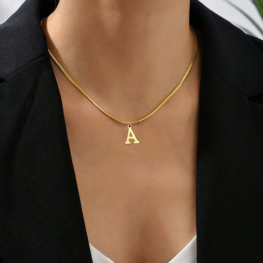 Script Initial Letter Herringbone Chain Necklace