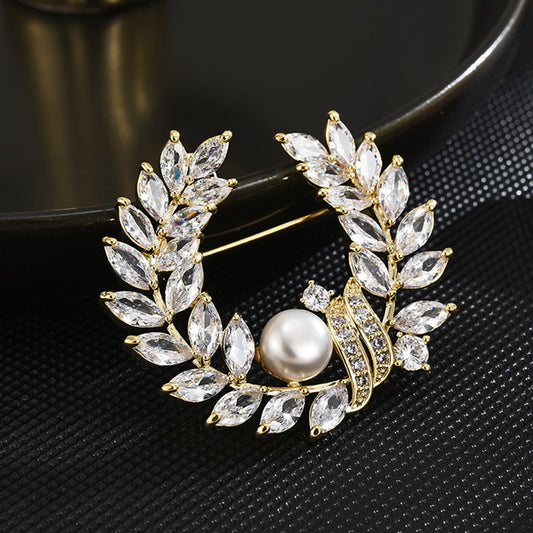 Classic Freshwater Pearl Zircon Leaf Brooch