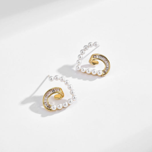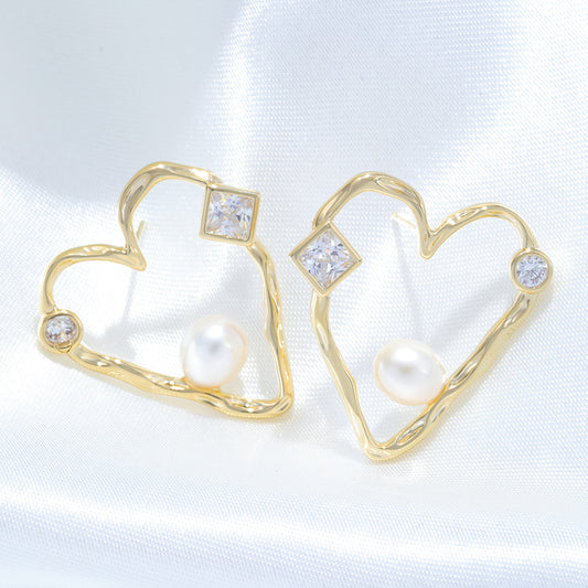 Pearl Zirconia Heart Stud Earrings
