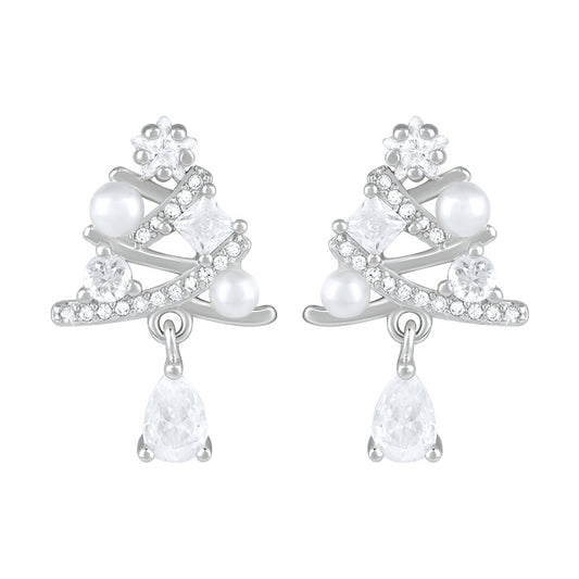 Teardrop White Sapphire Dangling Christmas Tree Stud Earring