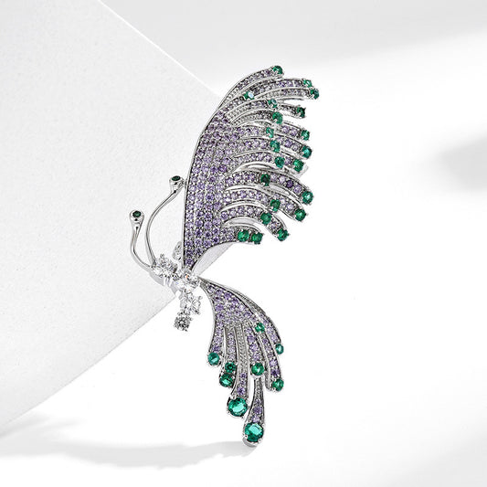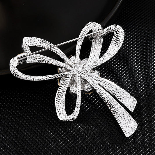 Classic Butterfly Knot Ribbon Blue Crystal Brooch