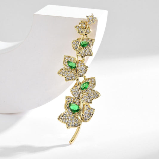 Emerald Maple Leaf Zircon Brooch