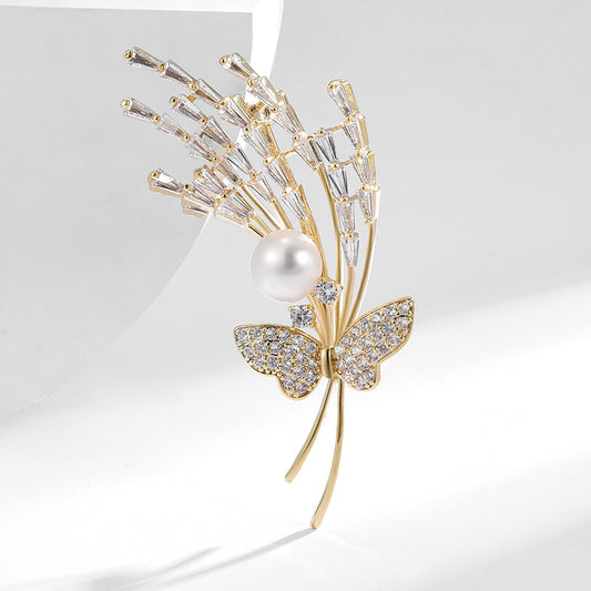 Freshwater Pearl Butterfly Micro-inlaid Zircon Brooch