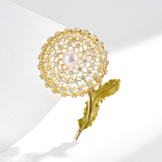 Freshwater Pearl Dandelion Brooch