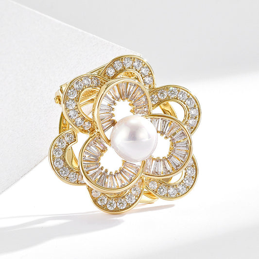 Freshwater Pearl Zircon Crystal Flower Brooch
