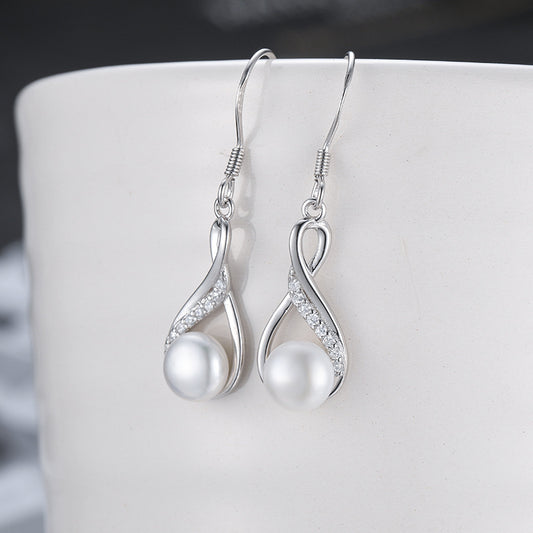 Freshwater Pearl Raindrop Twist Pave Hoop Earrings