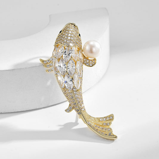 Freshwater Pearl Fish Brooch
