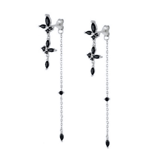 Black Butterfly Zirconia Dangle Double Sapphire Chain Stud Earrings