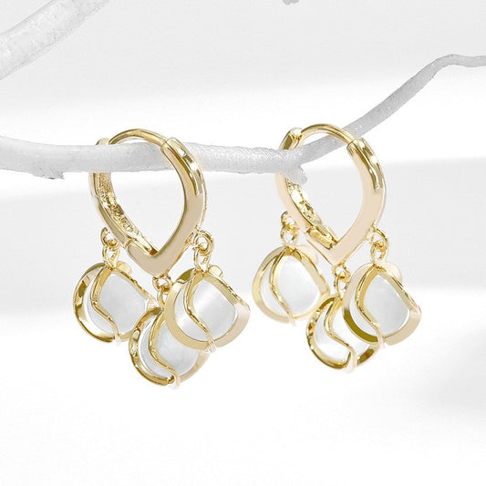 Triple Moonstone Dangling Hoop Earrings