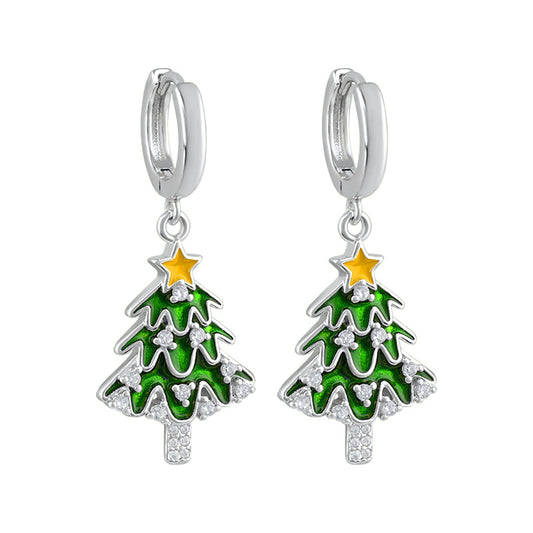 Teardrop White Sapphire Dangling Christmas Tree Stud Earring