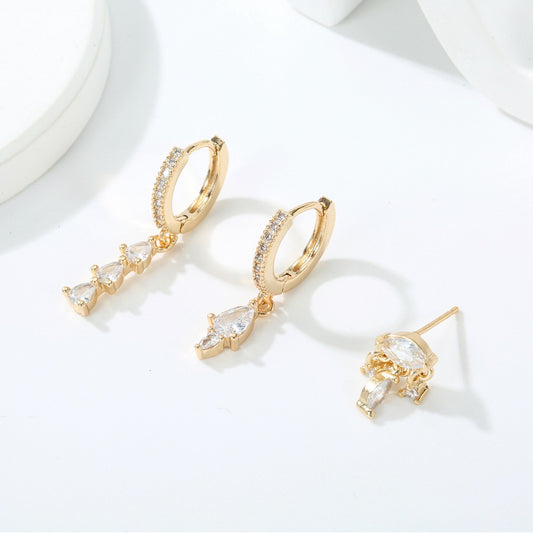 Raindrop Solitaire Dangling Stud Odd Earrings 3 pieces