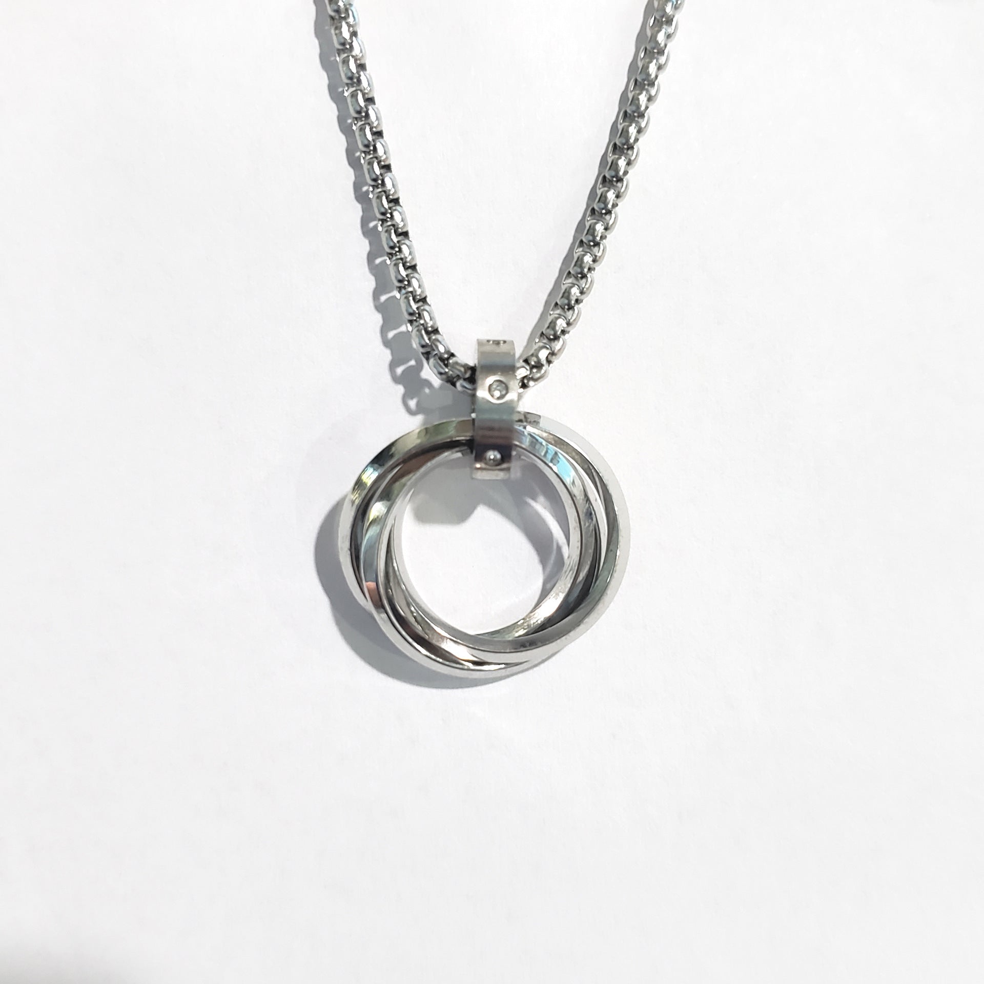Elevate your streetwear style with our Hot-Selling Stainless Steel Triple Ring Necklace. Designed with a bold hip-hop aesthetic, this piece features three interlocking rings on a sturdy box chain for a modern, eye-catching look. Crafted from premium titanium steel, it’s resistant to fading, tarnishing, and everyday wear—ensuring long-lasting shine and durability. Minimalist yet statement-making, this necklace is perfect for men who want to showcase strength, style, and confidence in every outfit.